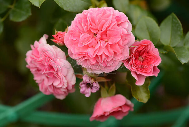 Роза Пинк Свани, Мейян (лиц) Раскидистый куст с ниспадающими побегами. Ярко-розовые густомахровые некрупные цветки в крупных кистях (10-15 бутонов) на концах побегов. На ярком солнце выгорают до светло-розового. Диаметр цветков 7-9 см. Листва очень красивая, темно-зеленая, мелкая, блестящая. Высота 40-60 см, ширина 50 см. Устойчивость к заболеваниям высокая.