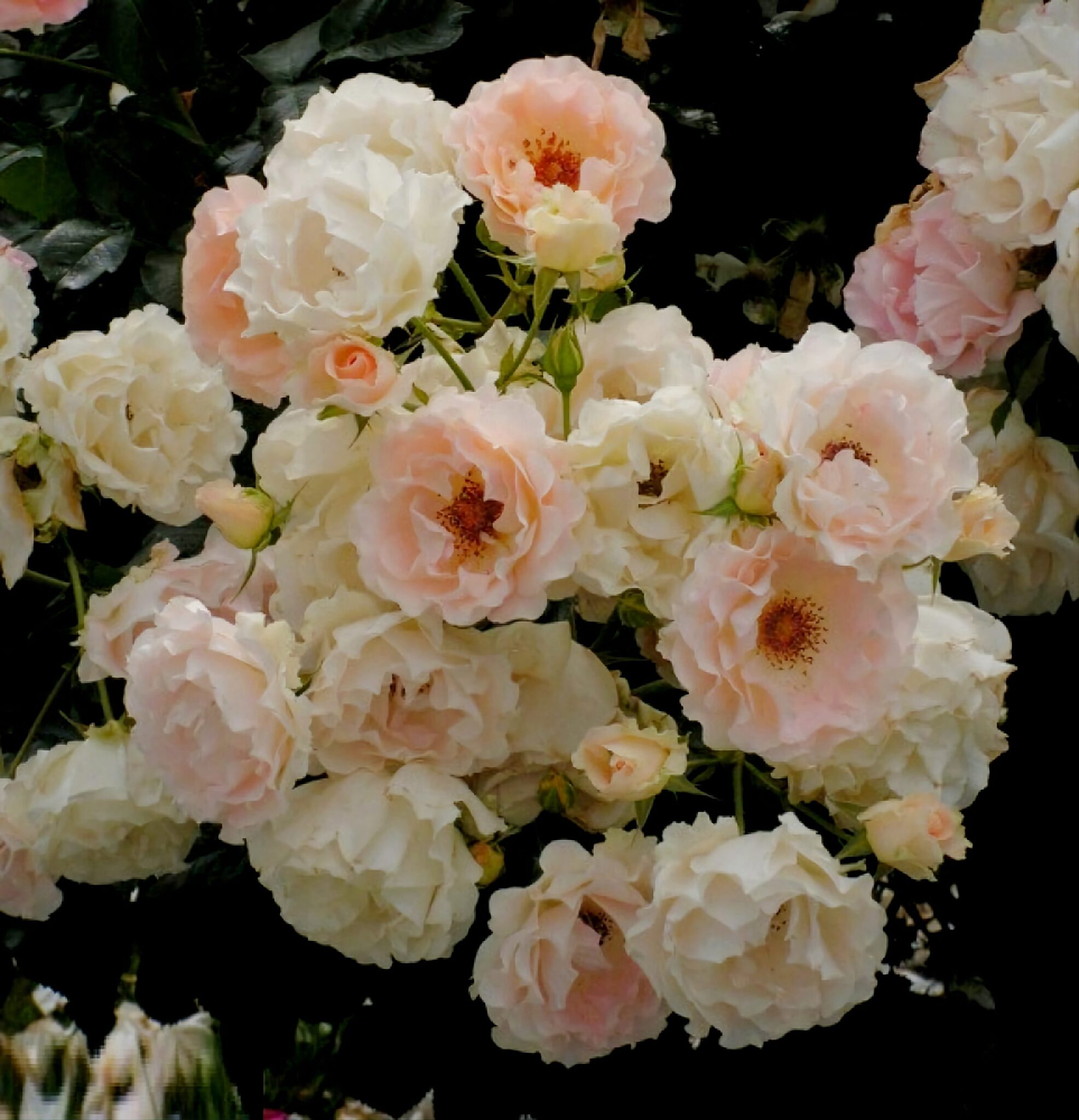 Куст мощный, сильнорослый, с прочными побегами. Высота растения 140 - 180 см, размер куста 150 х 150 см. Устойчивость к заболеваниям высокая, очень морозостойкий сорт роз, хорошо переносит жаркое лето. С темно-зеленой, матовой, крупной листвой. Цветение обильное, в период массового цветения на одном цветоносе до 5-10 цветков, продолжительное, повторное.Цветок нежно-абрикосовый до кремово-желтого с розовыми штрихами, с волнистыми лепестками и золотисто-желтыми тычинками. Очень устойчивый к неблагоприятным погодным условиям (солнце, дождь, мороз), чашевидный, махровый, 15 - 25 лепестков в одном цветке, диаметр цветка 8 – 11 см, обладает насыщенным ароматом шиповника. Интересный, привлекающий внимание сорт.