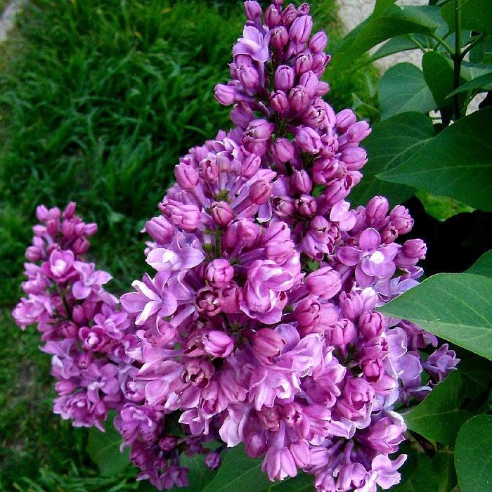 - Цветение длится с мая по июнь. Маленькие плотно сжатые бутоны пурпурно-лилового цвета раскрываются в крупные махровые цветки лилово-голубого оттенка. Соцветия крупные, узкие и рыхлые, достигают длины 25 см. Аромат цветков сильный, сладостный, с медово-барбарисовыми нотами.