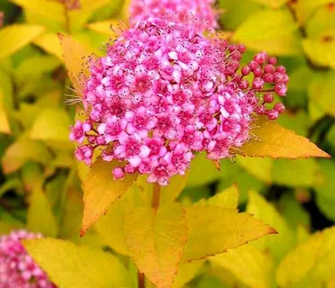 - Цветение: некрупные розовые щитковидные соцветия появляются в июне-июле.