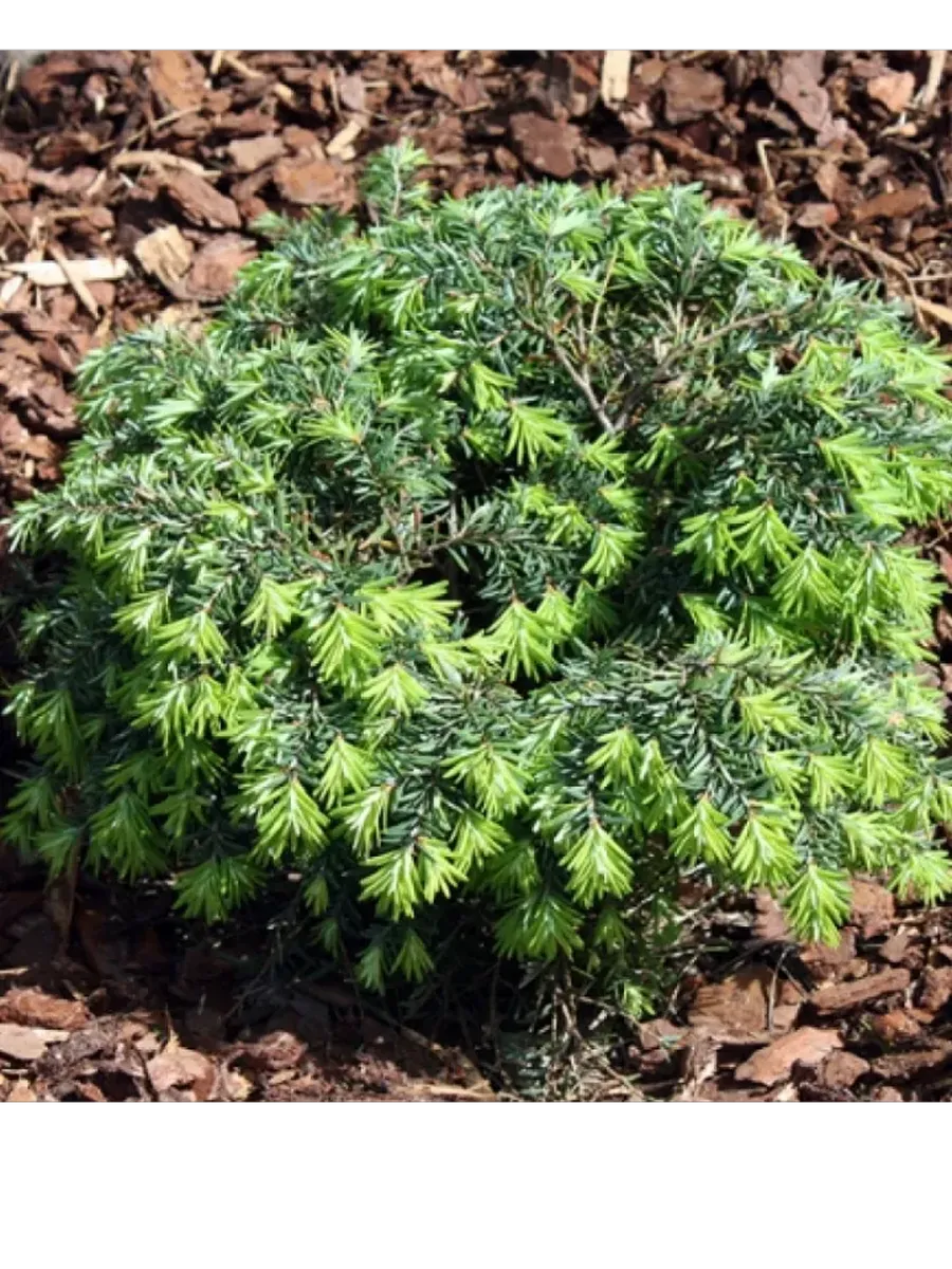 Медленнорастущий сорт тсуги, достигающий после 10 лет около 0,4 м высоты при 0,6 м диаметра. В целом — неприхотливые растения, не склонные к заболеваниям. Уже будучи молодыми тсуги имеют сильно компактную и густую крону. Радиусно расположены побеги образуют характерное углубление посередине кустарника, как будто гнездо. Иглы мелкие, ярко-зеленые. Требует плодородной и влажной почвы, защищенных от ветра участков. Идеальный выбор для небольших садов, каменных садов и лужаек.