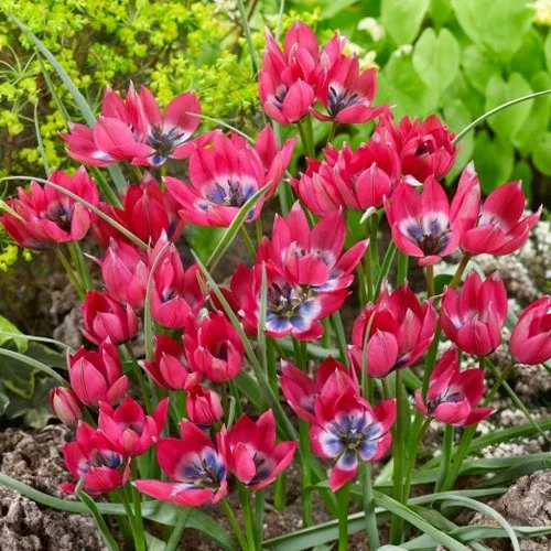 Тюльпан «Литл Бьюти» - притягивающий восхищенные взгляды травянистый многолетник с оригинальными цветами. Цветет довольно поздно, в мае-июне, когда другие тюльпаны уже отцвели. Лепестки цветов снаружи окрашены в малиново-пурпурный цвет. Основание лепестков зеленоватое. При полном раскрытии цветок демонстрирует контрастное донце темно-синего цвета. Раскрытые цветы звездообразной формы имеют красно-пурпурный окрас.