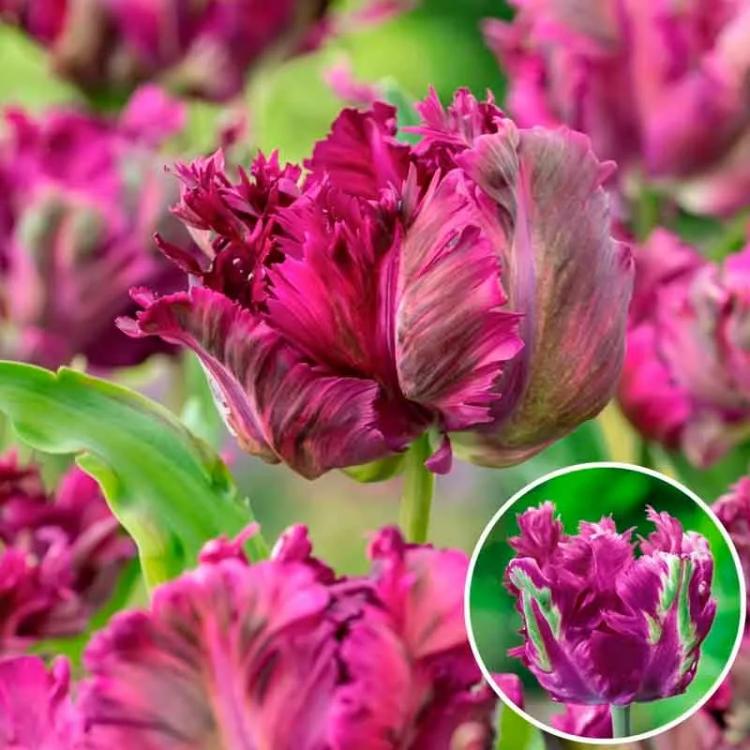 Тюльпан Негрита Пэррот - восхитительная новинка с очень богатым и продолжительным цветением. Растение уже в начале мая подарит великолепные фиолетовые бутоны, которые на солнце могут переливаться малиновыми полутонами. Плотно прижатые друг к другу лепестки создают утонченный бутон, а их рваные гофрированные края делают цветение еще более шикарным. Цветки очень крупные – их диаметр может составлять от 8 до 10 см. А полностью раскрытый цветок может достигать размера 15 см.