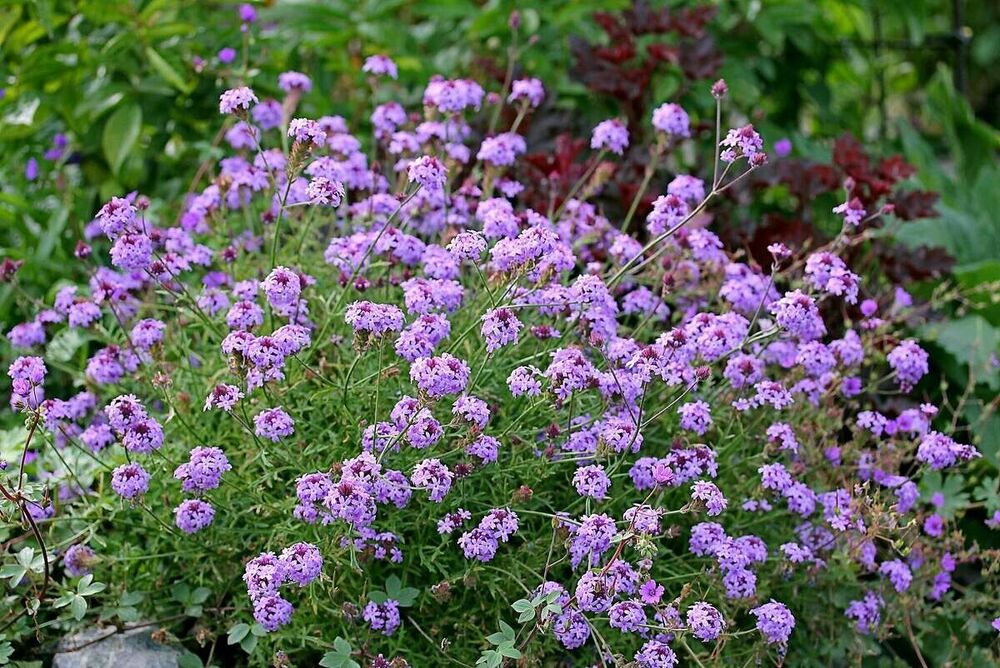 Вербена Лолипоп - длительно и обильноцветущий сорт с многочисленными аметистовыми цветками. Формирует кустики высотой до 60 см. Цветки мелкие, фиолетово-розовые. Цветет обильно и продолжительно с июня до поздней осени. Стебли прямостоячие, листья серо-зеленые, по краю зубчатые.