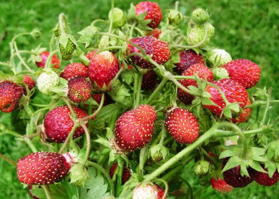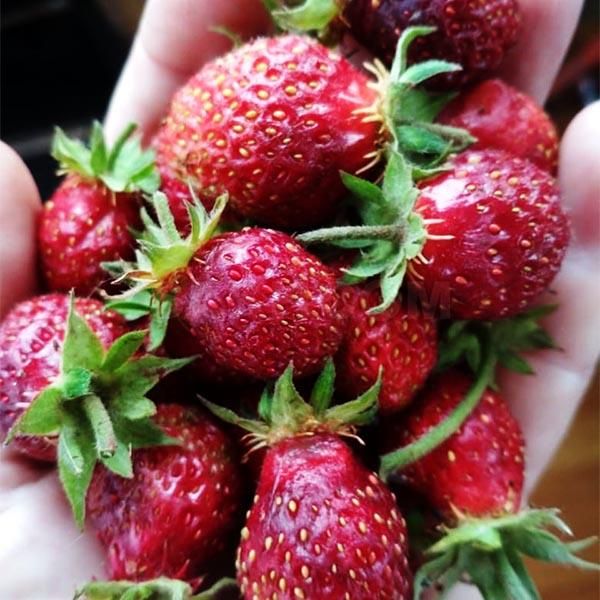 - Ягоды многочисленные, размером 20–30 г, округло-конические, в меру плотные, бордово-красные. Вкус гармоничный, землянично-мускатный, с ярким пряным ароматом.