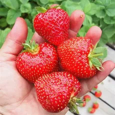 - Ягоды: крупные (20–40 г, отдельные экземпляры до 50–60 г), округло-конической или ширококонической формы, с ровной поверхностью. Цвет ягод насыщенно-красный, равномерный, с блеском. Мякоть плотная, сочная, тёмно-красная, сладкая с приятной кислинкой и выраженным земляничным ароматом.